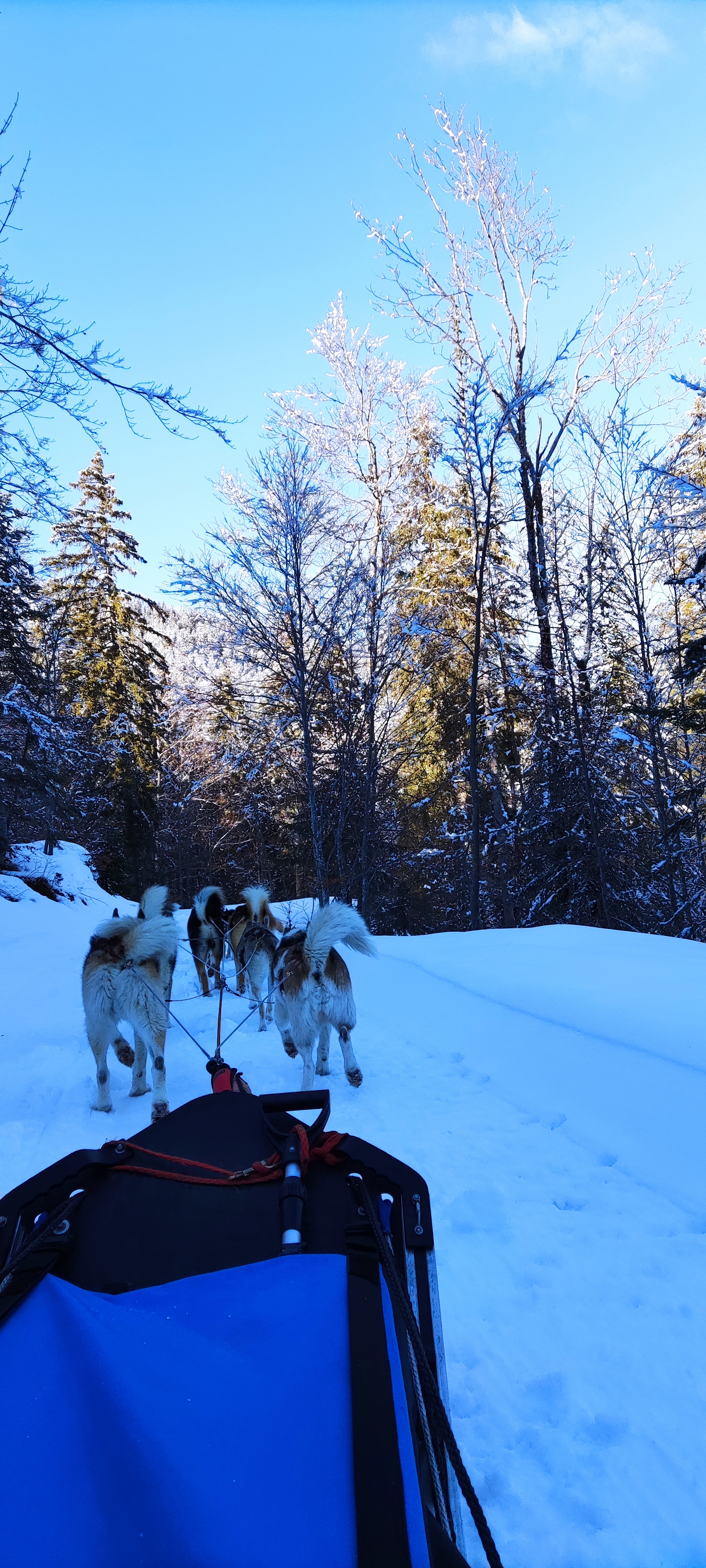 Merci pour cette superbe balade guidée par notre musher et ses magnifiques chiens de traîneau. Des paysages à couper le souffle au cœur d’une forêt ensoleillée et enneigée.