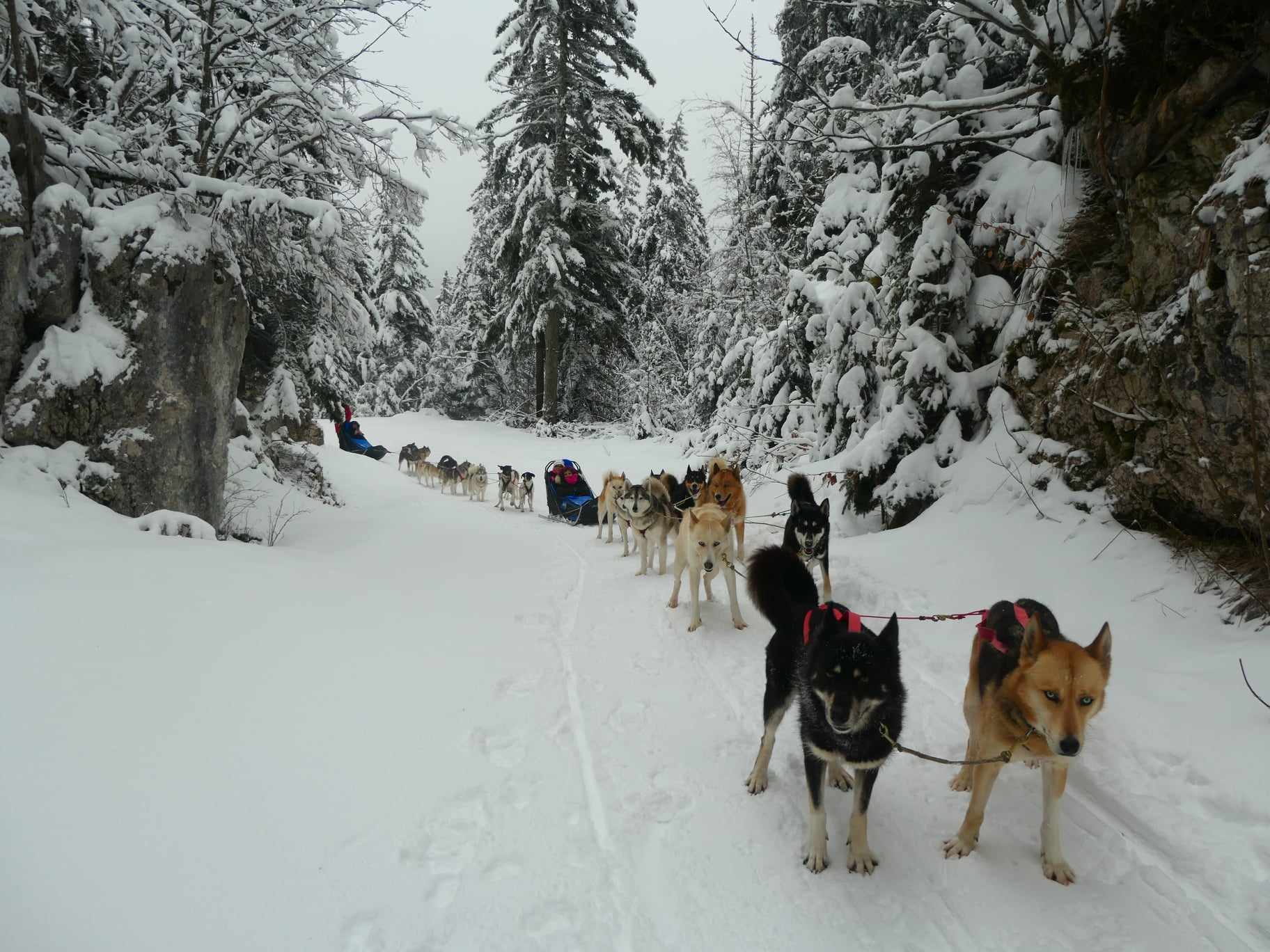 Une ballade en traîneau, tiré par des chiens magnifiques et un musher sympathique, tout cela dans un cadre de forêt en montagne à couper le souffle. Une expérience à vivre !